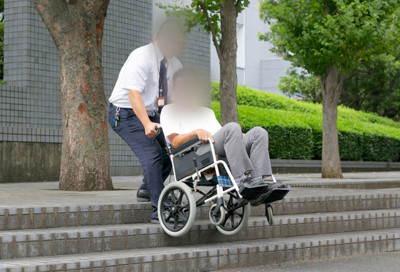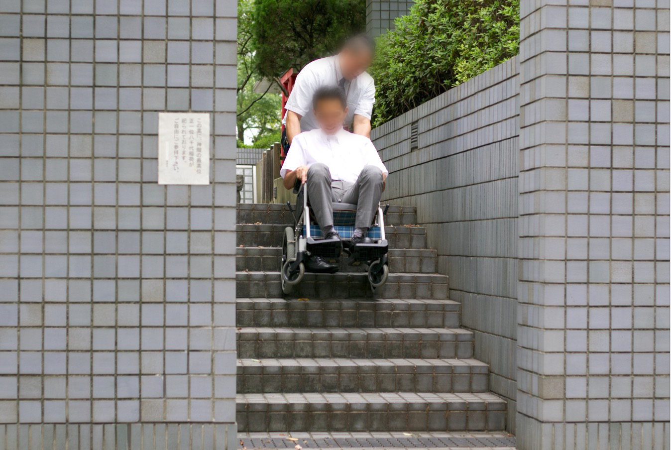 玄関や、部屋に階段がある場合の 車椅子での階段上げ